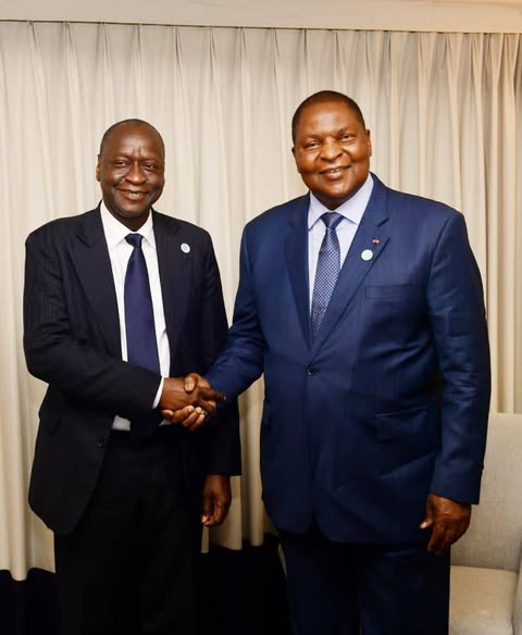 LE PRÉSIDENT DE LA RÉPUBLIQUE FAUSTIN ARCHANGE TOUADÉRA ÉCHANGE AVEC OUSMANE DIAGANA, VICE-PRÉSIDENT DE LA BANQUE MONDIALE SUR LES PERSPECTIVES D’APPUI AU PND 2024-2028